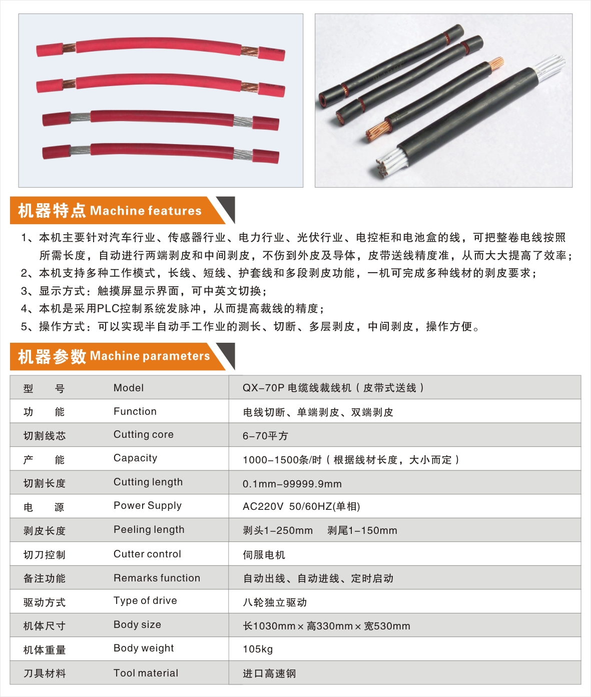 QX-70P 電纜線裁線機(皮帶式)