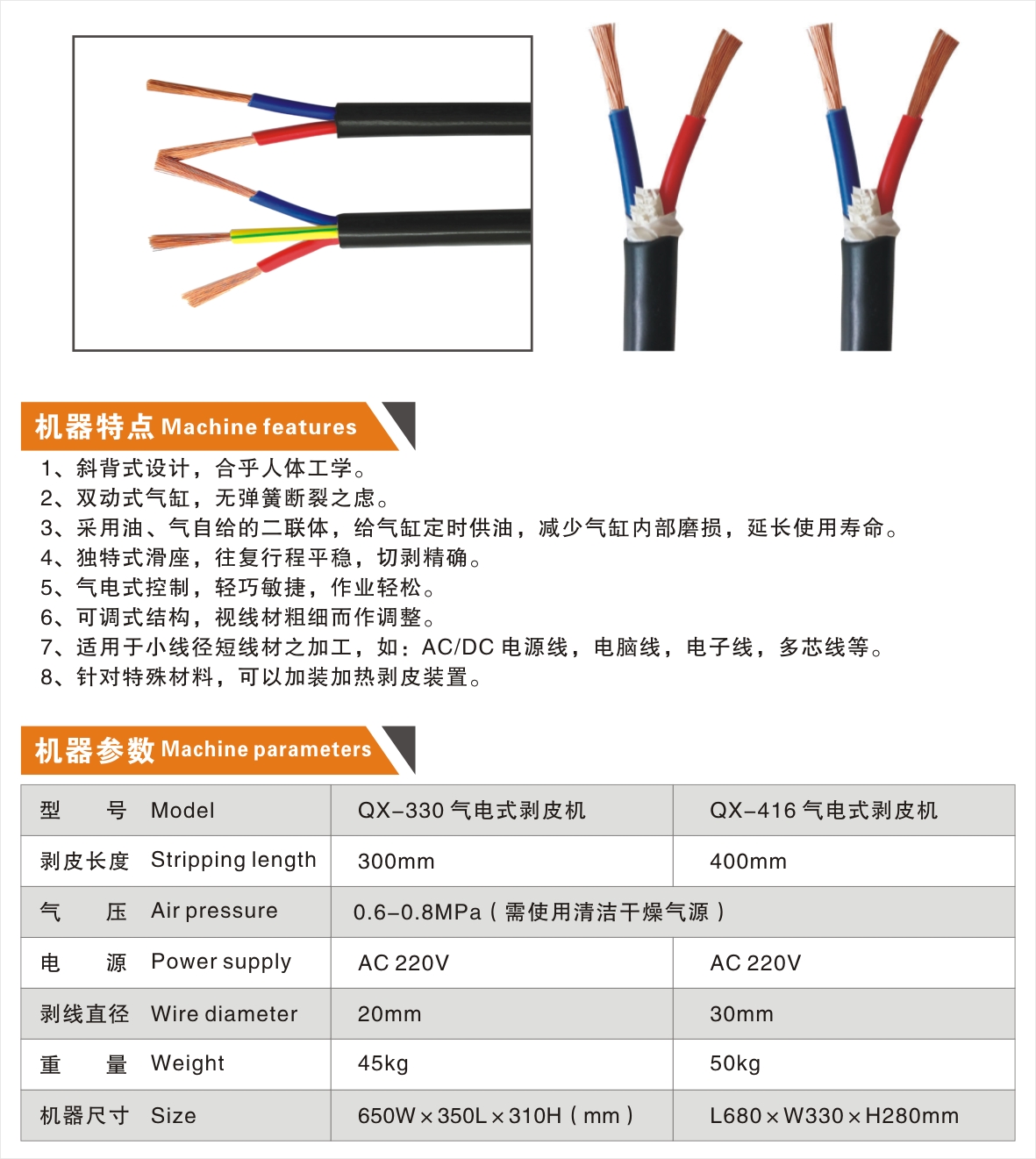 QX-330、416 氣電式剝皮機